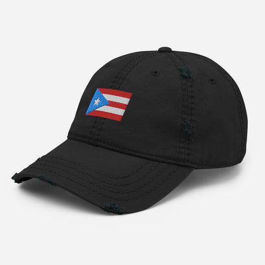 Puerto Rico Flag Embroidery Distressed Dad Hat